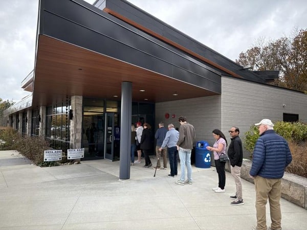 Outside the Jill Perelman Pavilion in Carmel, voters wait in line to cast their ballots in the November 2024 election. (Photo/Dwight Adams)