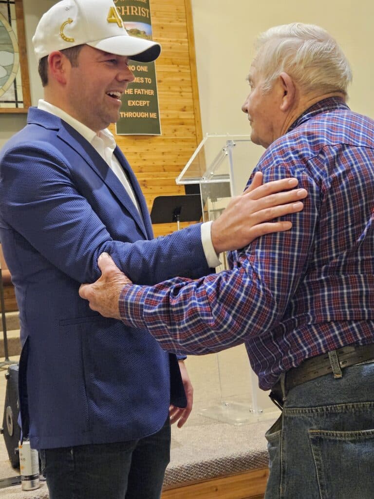 Indiana Lt. Gov. Micah Beckwith stayed after the Muncie town hall ended and talked to any constituent who had a comment or question. (Photo/Marilyn Odendahl)