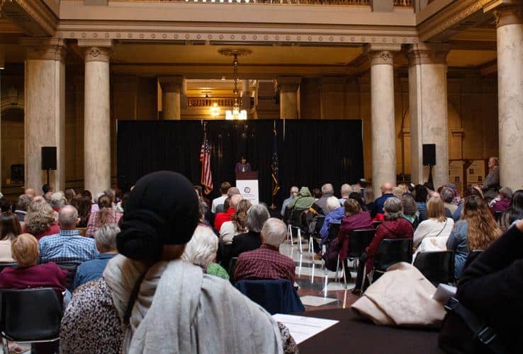 On Thursday at the Indiana Statehouse, a united crowd of Christians, Muslims, Jews, Hindus and Buddhists all sat and listened intently to a prayer given by Michael Sahir, an Islamic spiritual leader who authors the monthly column “Al-Islam” for The Indianapolis Recorder.