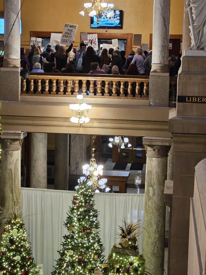 When lawmakers returned Dec. 1, individuals and voter-advocacy groups who had been rallying and protesting against redistricting for months, were at the Statehouse in force. Leaders of those organizations gathered outside the upper chamber on Thursday to make a final plea shortly before the senators took the final vote on HB 1032.
