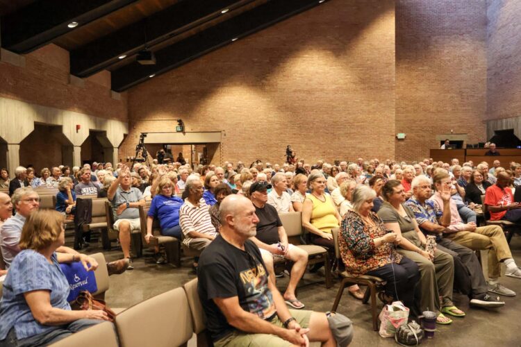 Overwhelmingly the attendees of the meeting seemed to be just as frustrated and even angry at the prospect of a mid-decade redistricting. Packed into the pews, the crowd groaned when a reference was made to President Donald Trump and applauded when the representatives said having competitive districts is good for the voters and for the state.
