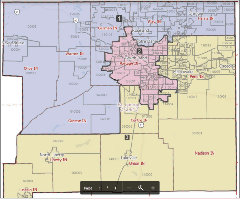 Wednesday’s action in Elkhart Superior Court followed votes to approve the new maps (above) by the St. Joseph County Board of Commissioners and County Council earlier this week.