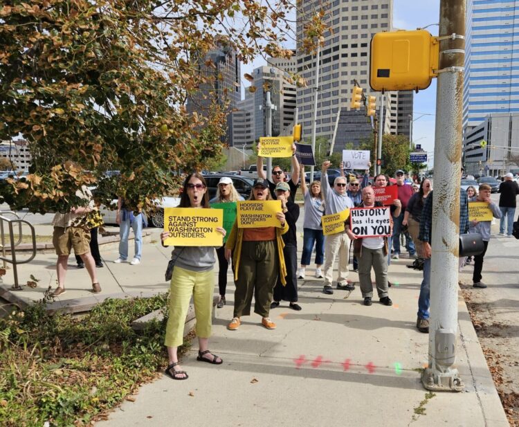 As Vice President JD Vance returned to the Indiana Statehouse on Friday to convince state Republican lawmakers to redraw Indiana’s congressional district map, protesters and Democratic legislators gathered, again, to tell the GOP supermajority to “Just say no.”